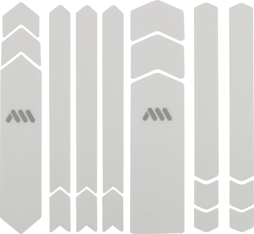 Features:universelles Rahmenschutzsystem aus 8 Teilen: Unterrohr, seitliches Unterrohr, Oberrohr, Streben und Pfeile zur Erweiterung und gegen KabelverschleißDeine Lösung wenn Du Dir für Dein E-MTB oder Dein Downhill-Rad eine vollständige Abdeckung wünschstverhindert Beschädigungen und Kabelabrieb am Rahmen380 Mikrometer halbsteifes PVC in Wabenform bietet Dir hohe Schlag- und Scheuerfestigkeit bei minimalem Gewicht (48 Gramm)Materialien, die nicht mit der Zeit vergilbeneinfache, universelle Montage, selbst in schwierigen WinkelnHerstellernummern:camo:AMSFG5CLCMclear:AMSFG5CLSVsuper rider black:AMSFG5SRBKzebra grey:AMSFG5ZBGYzebra white:AMSFG5ZBWHcheetah grey:AMSFG5CHGYcheetah white:AMSFG5CHWHFarbinfo:camo:transparent, grau mit Camouflage-Mustersuper rider black:transparent, schwarz mit MTB-Elementenzebra grey:transparent, grau mit Zebra-Musterwhite zebra:transparent, weiß mit Zebra-Mustercheetah grey:transparent, grau mit Cheetah Mustercheetah white:transparent, weiß mit Cheetah MusterLieferumfang:1 x Rahmenschutzaufkleber-Set All Mountain Style Frame Guard Full