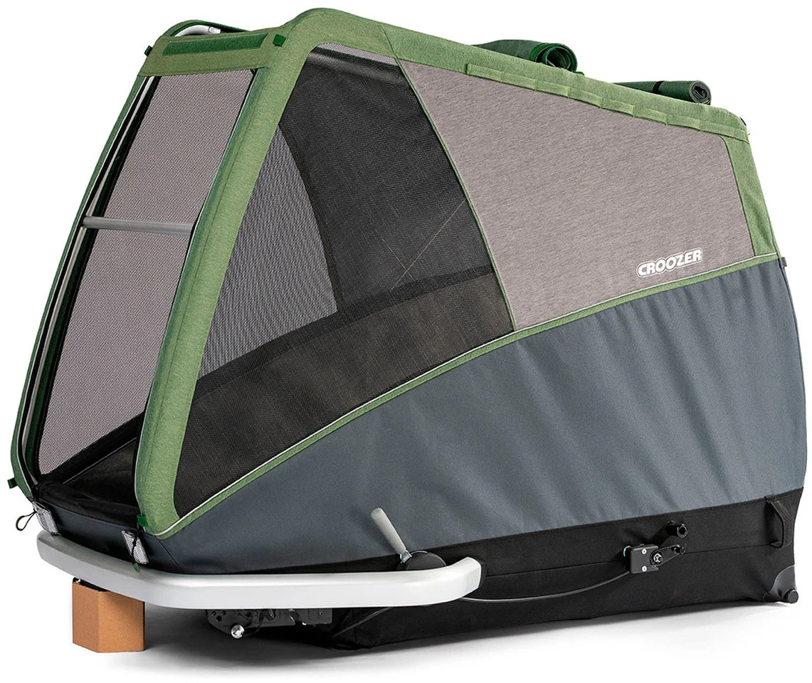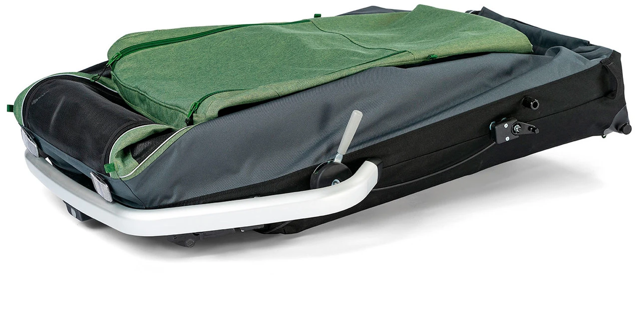 Hundebett, innerhalb und außerhalb des Anhängers nutzbarUniversalkupplung Click & Crooz für ein weiteres ZugfahrradFaltgarage, wasserdicht, gegen Staub, Schmutz, RegenRegenverdeck