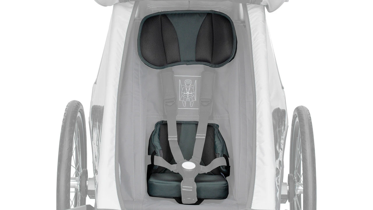 Die Sitzstütze für Kinderanhänger von Croozer trägt zu einem komfortablen Sitz für Kleinkinder bei und stabilisiert den Körper sanft und sicher. Der erhöhte Sitz erlaubt eine perfekte Anpassung der Gurte. Hüft- und Kopfstütze umschließen den kleinen Passagier sanft.