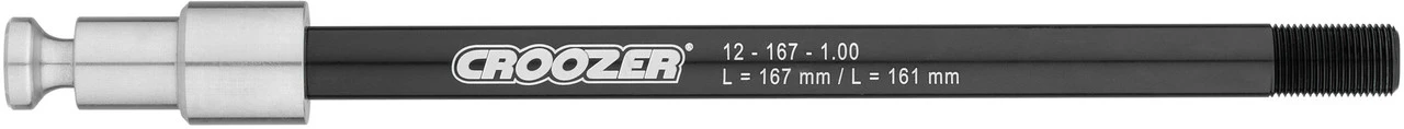 Spezifikationen:Einbaubreite:135 mm, 142 mm, 148 mm, 177 mm, 197 mmAchsdurchmesser:12 mmTechnische Daten:Verwendung:12 x 135 mm, 12 x 142 mm, 12 x 148 mm, 12 x 177 mm, 12 x 197 mmTyp:SteckachseMaterial Achse:AluminiumAchslänge:165 mm, 167 mm, 178 mm, 180 mm, 198 mm, 209 mm, 229 mmNenndurchmesser:M12Gewindesteigung:1 mm, 1,5 mm, 1,75 mmFeatures:integrierte Click & Crooz Kupplungfür schwierig erreichbare Ausfallendenmit verlängertem 20 mm SockelAusführungen:12 x 165 mm / 1,5 mm: