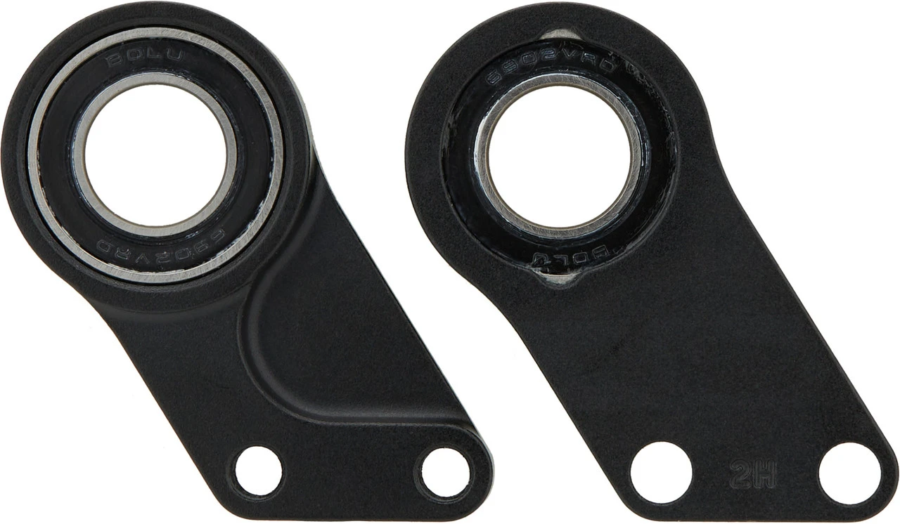 Mit der zweiteiligen unteren Dämpferaufnahme für das Yalla! Downhill-Bike von RAAW Mountain Bikes passt Du Tretlagerhöhe und Progression nach Deinen Wünschen an. Die Lager sind bereits eingepresst.