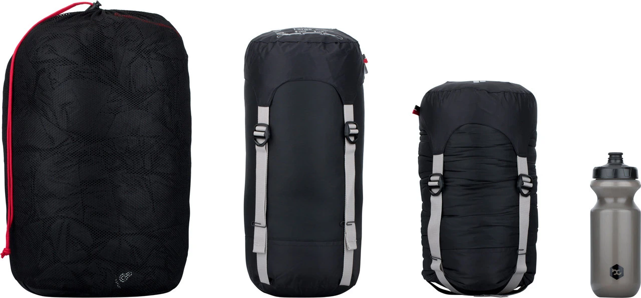 Der Exosphere 0° Schlafsack von deuter eignet sich für Bikepacker und Radreisende, die von Frühjahr bis in den Herbst hinein unterwegs sind. Die dehnbare Mumienkonstruktion bietet Dir viel Bewegungsfreiheit, wobei sie sich gleichzeitig schnell aufwärmt und die Wärme gut konserviert. Zuträglich sind dabei die sich selbst anpassende Kapuze sowie der Wärmekragen. Im Bereich der Füße wurde sogar an eine doppelte Schicht Isoliermaterial gedacht, damit Du auch dort stets gut gewärmt bist. Das Thermo-ProLoft®-Isolationsfleece ist leicht, sehr robust und verfügt über eine hohe Wärmeleistung. Außerdem ist es sehr pflegeleicht und gut komprimierbar. Über den praktischen Zwei-Wege-Reißverschluss regelst Du bei höheren Temperaturen die Belüftung. Besonders funktional ist der Packsack mit Kompressionsriemen, mit dem der Schlafsack auch gut in kleineres Gepäck passt.