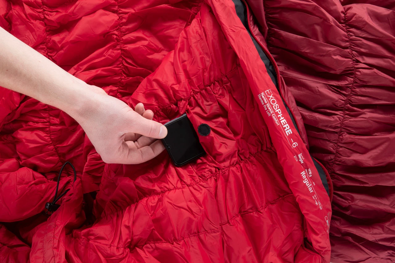 Elastische Kammernähte erzielen zu eine äußerst dehnbaren Mumienform. Das führt zu einem besseren Wärme- und Gewichtsverhältnis. Außerdem ist diese Konstruktion um bis zu 25 % in der Breite dehnbar, was für einen hohen Schlafkomfort sorgt.