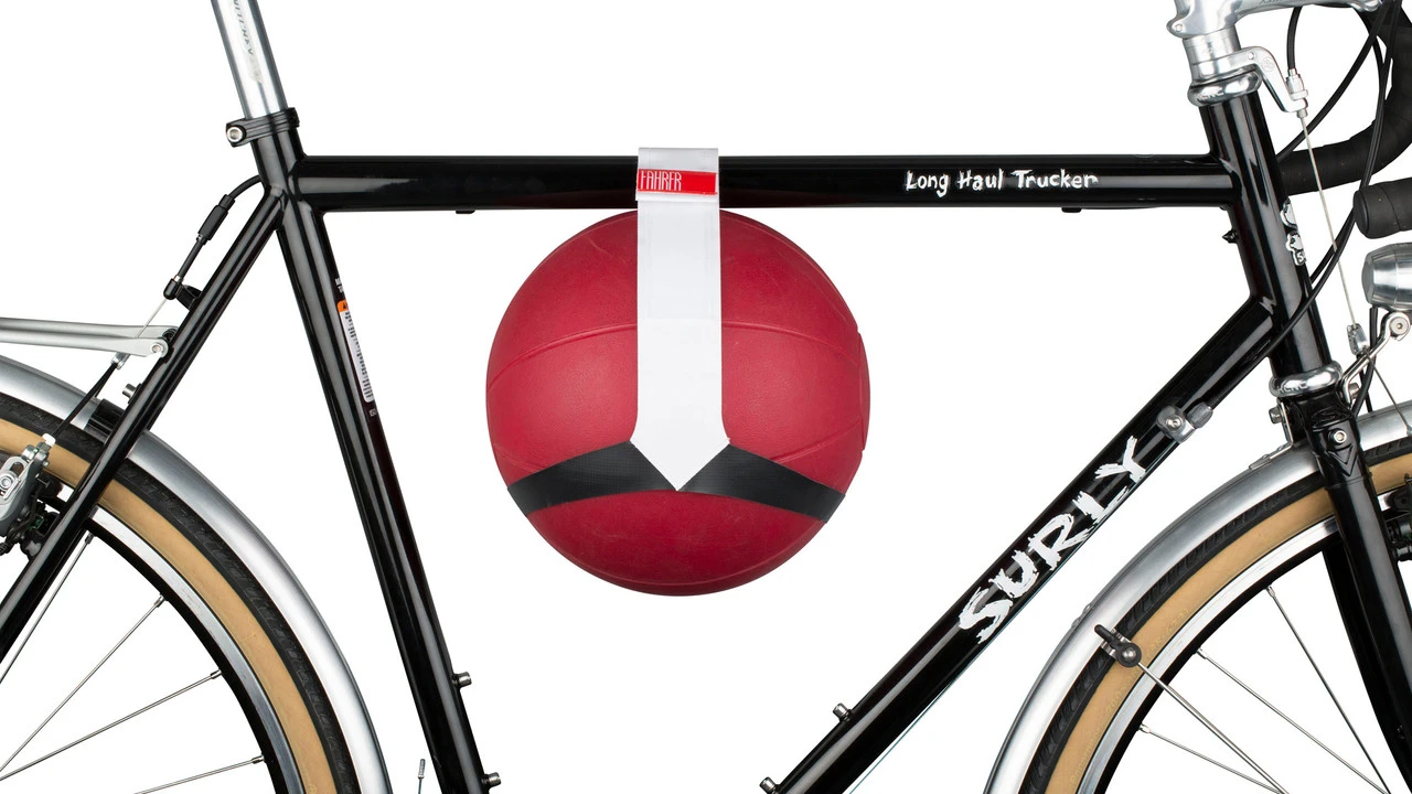 Mit dem Kicker Ballhalter von FAHRER kannst Du einen Fußball, Handball oder Basketball per Klettverschluss am Oberrohr oder an der Sattelstütze festmachen und so problemlos zum Sportplatz transportieren.