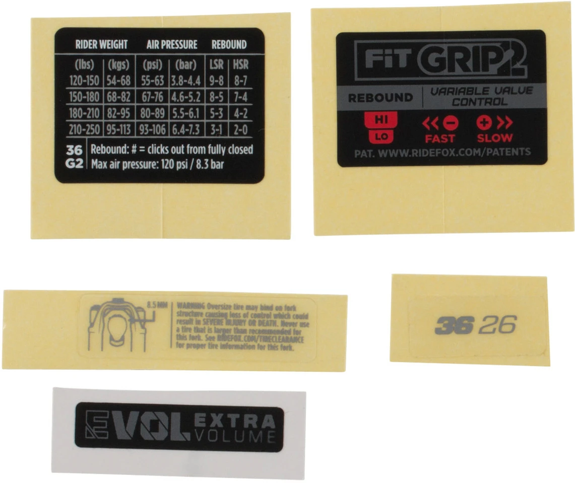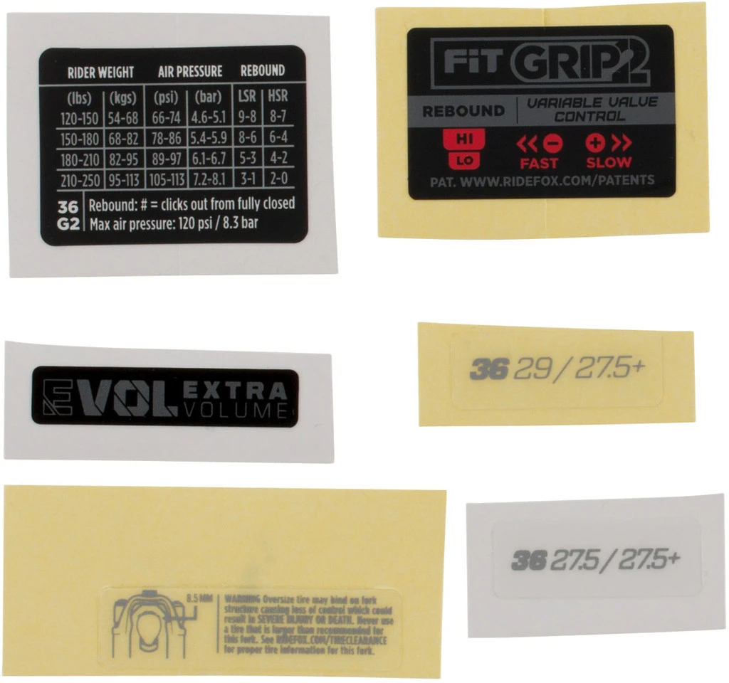 Dieser Fox Racing Shox Decal Kit Aufklebersatz passt perfekt an Deine 36 Federgabel mit Modelljahr 2021.