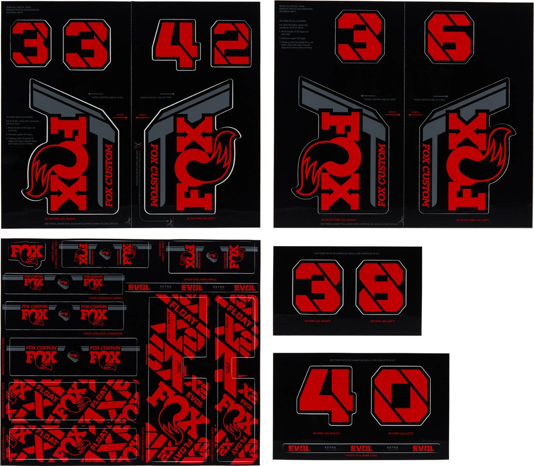 Mit diesem Fork and Shock Decal Kit von Fox Racing Shox erhältst Du verschiedene Aufkleber passend für verschiedene Federgabeln und Dämpfer ab Modell 2021.