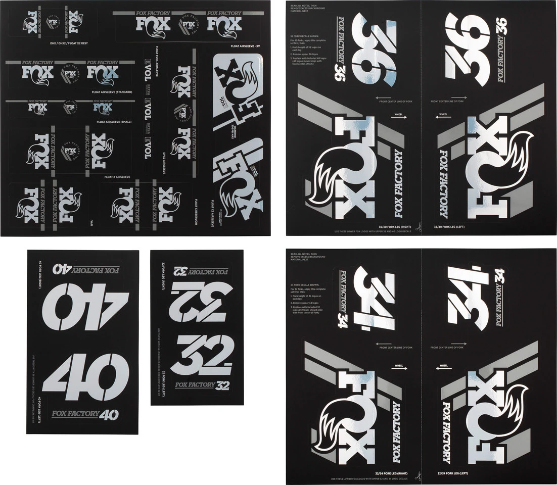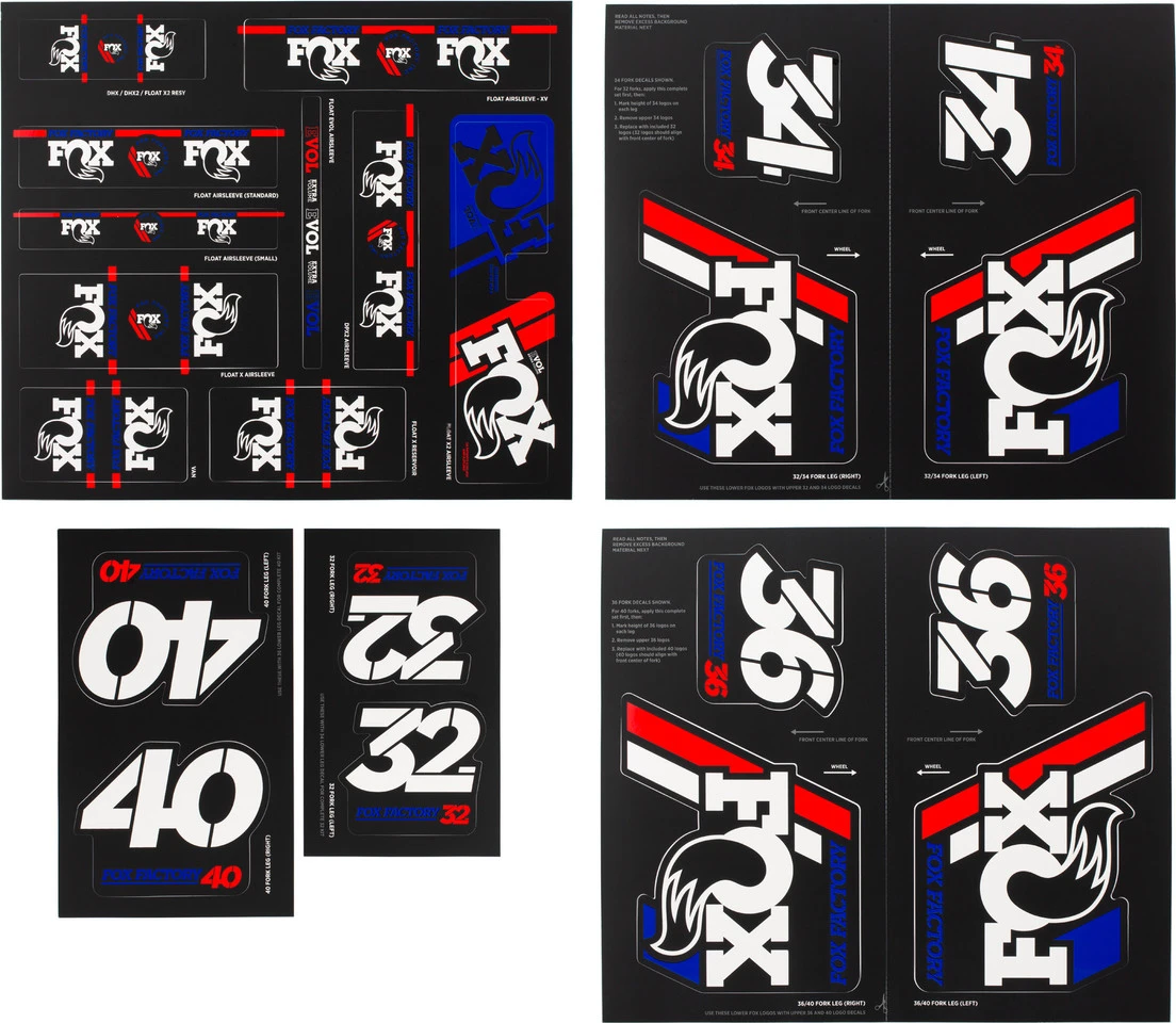 Das Heritage Fork and Shock Decal Kit von Fox Racing Shox beinhaltet verschiedene Factory Aufkleber für Federgabeln und Dämpfer bis Modelljahr 2020.