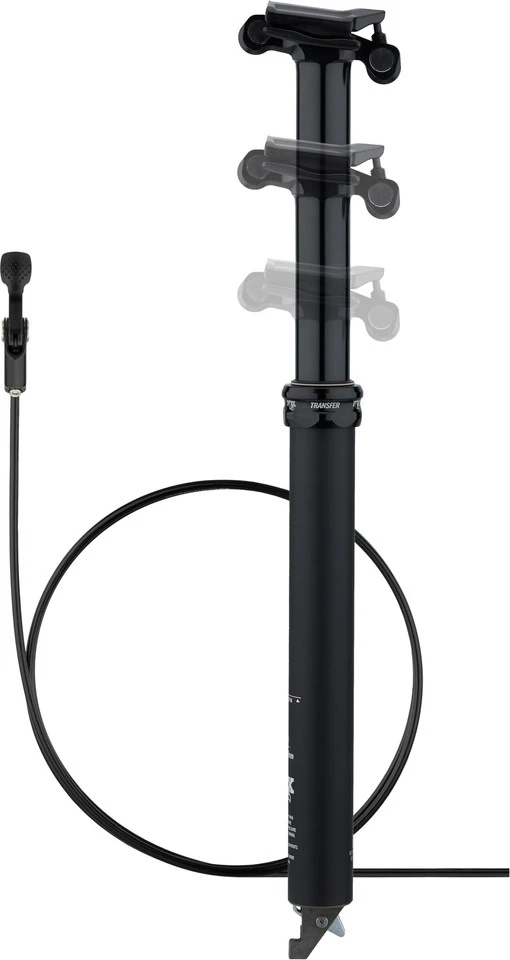 Die Transfer Performance Elite Vario-Sattelstütze von Fox Racing Shox mit einer schwarzen, harteloxierten Oberfläche und 150 mm Hub glänzt mit geringer Gesamtlänge und Einstecktiefe. Das macht sie kompakter und leichter. Zwei unterschiedliche Hebeldesigns sorgen dafür, dass die Sattelstütze zu jedem Antrieb passt. Der Bowdenzug zur Ansteuerung wird innen verlegt. Zudem wurde die Wartungsfreundlichkeit verbessert.