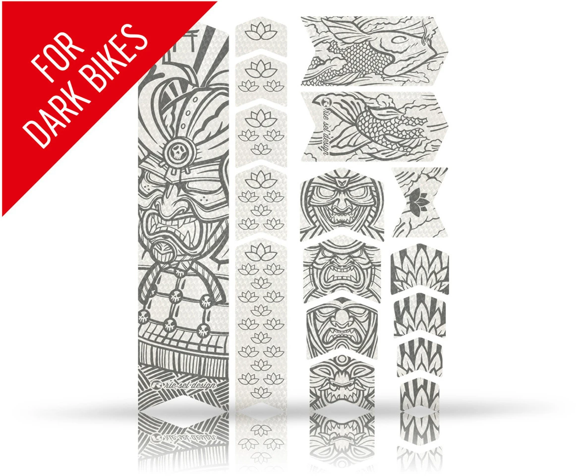 Features:17 Shapes zwischen 70 x 340 mm und 30 x 30 mm für maximale Anpassbarkeitaus unverwüstlichem Honeycomb MaterialselbstklebendFarben verblassen nichthalbtransparent, verschmilzt optisch mit der Rahmenfarbenur 41 g GesamtgewichtHerstellernummern:dazzl:T3-F004camo:T3-F003maori:T3-F005japan:T3-F006clear:T3-F002stickerbomb:T3-F001Lieferumfang:1 x Rahmenschutz Set rie:sel frame:TAPE 3000