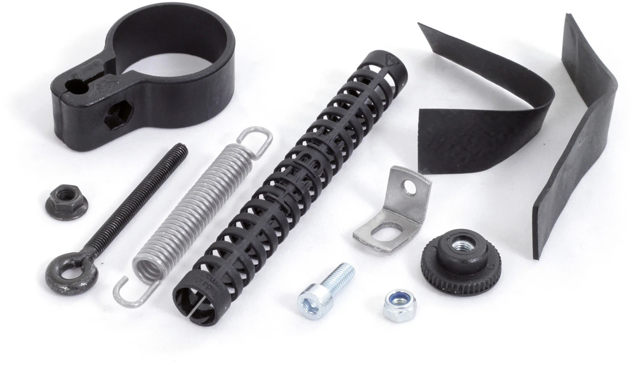1 x Feder1 x Abdeckung1 x Haltewinkel Niro1 x Rahmenschelle Kunststoff2 x Gummiunterlage1 x Ringschraube1 x Schraube2 x Mutter1 x Rändelschraube1 x Unterlegscheibe