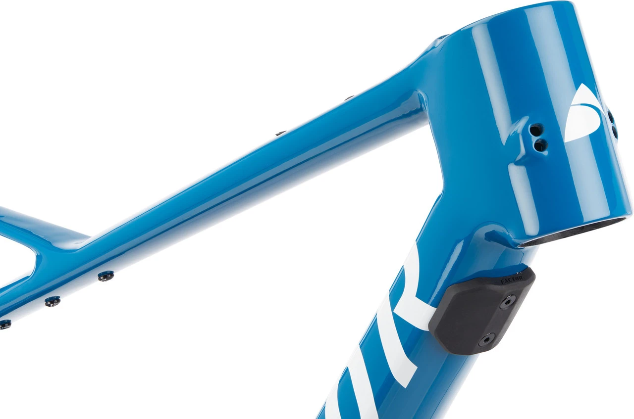 Mit dem Lando XC 29″ Rahmenkit von Factor baust Du Dir ein leistungsstarkes Cross Country Full-Suspension-Bike aus Carbon auf. Zur Performance Deines künftigen MTBs tragen sowohl der R 232 ONE Dämpfer von DT Swiss mit 45 mm Hub und Lenkerremote, als auch die CeramicSpeed Lager im Steuersatz und im Tretlager bei. Außerdem kommt das Rahmenkit mit einer aerodynamischen Lenker-Vorbau-Einheit von Black Inc, mit der Du erst recht schnell unterwegs bist. Auch bei der Faux-bar-Kinematik des Rahmens, die nur einen einzigen Drehpunkt hat, wurde besonders auf Vortrieb geachtet. Der Dämpfer macht seinen Job und bleibt dennoch unter Spannung, um besonders schnell auf eine höhere Tretleistung zu reagieren. Die moderne Geometrie lässt Dich bei technischen Trails eine aufrechte Position einnehmen, während Du auf Sprintstrecken oder bergauf auf Angriff gehen kannst.