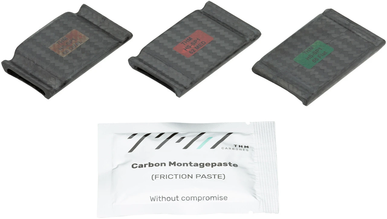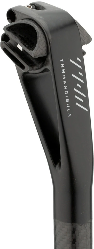 Die THM-Carbones Mandibula Sattelstütze, das Ergebnis zweijähriger Entwicklungsarbeit, ist eine sehr leichte und sehr komfortable Carbon Sattelstütze, die sich in zwei Bereiche gliedert: die Komfort-Zone und die Power-Zone. Letztere ist eine supersteife, leichte Struktur, die kaum flext, egal wie weit sie aus dem Rahmen ragt. Die Komfort-Zone bietet Dir das richtige Maß an Bequemlichkeit und nicht zu viel davon. Damit löst THM das Problem herkömmlicher komfortabler Sattelstützen, dass sie nämlich immer flexibler werden, je weiter sie aus dem Sattelrohr herausschauen – was insbesondere größere und schwerere Fahrer stört.