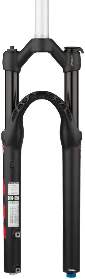 Spezifikationen:Einsatzbereich:CrossCountry, TrailLaufradgröße:26″Federung:Luft (TS Air)Federweg:100 mmGabelschaft:1 1/8″Achssystem:Schnellspanner (9 x 100 mm)Bremsaufnahme:Disc PM6 (direct mount 160 mm)Technische Daten:Vorlauf (mm):38,1 mmSchaftdurchmesser Vorbauklemmung:28,6 mmSchaftdurchmesser Konussitz:30 mmEinbauhöhe (mm):456 mmEinbaubreite:100 mmStandrohrdurchmesser:30 mmMaterial Gabelschaft:AluminiumMaterial Gabelkrone:AluminiumMaterial Standrohre:AluminiumMaterial Tauchrohre:AluminiumFreigaben:Reifengröße (max.):63 mmBremsscheibendurchmesser (max.):203 mmEinstelloptionen:Druckstufe:NeinZugstufe:JaFederhärte:über LuftdruckRemote:NeinFederwegverstellung:NeinFeatures:TPC (Twin Piston Chamber Cartridge Rebound) und Kwik Toggle DämpfungProgressive Rubber BumperTechnologien:Kwik Toggle: