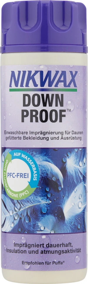 Die Nikwax Down Proof Imprägnierung für Schlafsäcke und Kleidung mit Daunenfüllung