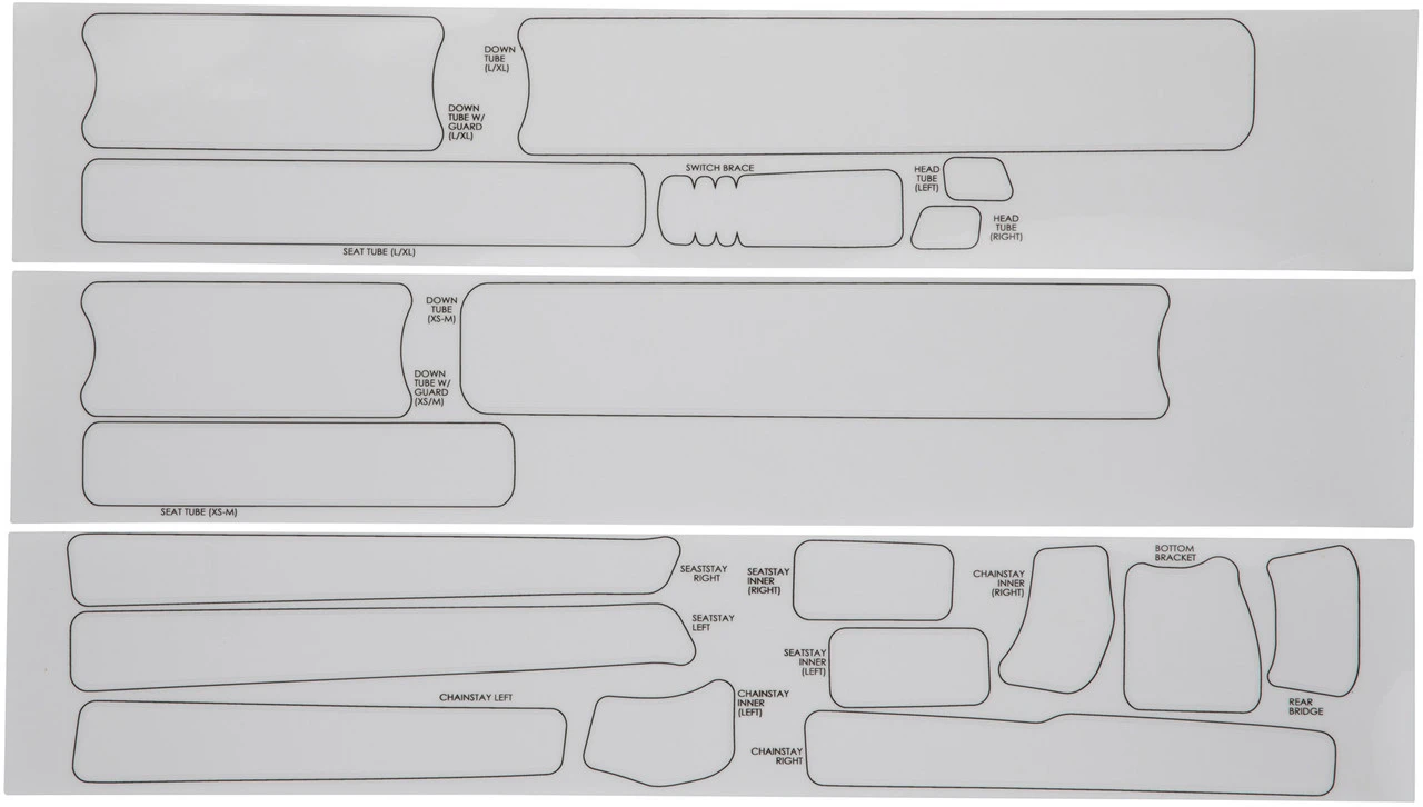 Das Rahmenschutzfolien-Set Gen2 für SB130 / SB140 / SB150 / SB165 von Yeti Cycles beugt unliebsamen Kratzern vor