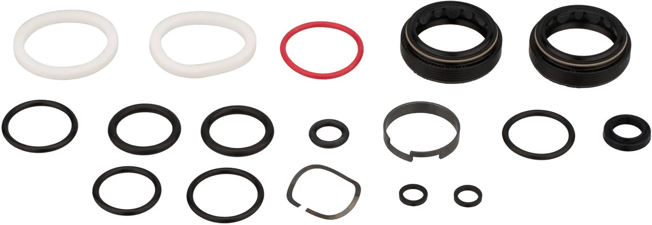 Das RockShox Service Kit nach 200 Stunden / 1 Jahr mit Ersatzteilen für die Reba A7 Boost mit 130 bis 150 mm Federweg