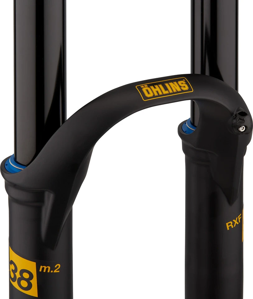 Die ÖHLINS RXF38 m.2 Air Federgabel eignet sich für 29″ -Trail- und Enduro-Bikes mit Boost-Einbaubreite und ist mit TTX-18-Dämpfung und einer Luftfederung mit drei Luftkammern ausgestattet. Sie bietet die unkomplizierte Einstellung von Druck- und Zugstufe und einen Klettermodus für lange Anstiege. Diese Variante der RXF38 hat um den Schaft herum eine eher schlanke Gabelbrücke. Hat Dein Rahmen ein dickeres Unter- und Steuerrohr, könnte sich die RXF38 m.2 Air L mit breiterer Gabelbrücke optisch noch besser einfügen.