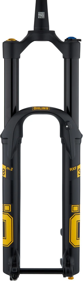 Die ÖHLINS RXF38 m.2 Air L Federgabel mit breiterer Gabelbrücke eignet sich für 29″ -Trail- und Enduro-Bikes mit Boost-Einbaubreite und ist mit TTX-18-Dämpfung und einer Luftfederung mit drei Luftkammern ausgestattet. Sie bietet die unkomplizierte Einstellung von Druck- und Zugstufe und einen Klettermodus für lange Anstiege. Die breitere Gabelbrücke dieser „L“-Variante der RXF38 weist um den Schaft einen größeren Durchmesser auf, was optisch insbesondere mit eher dicken Unter- und Steuerrohren harmoniert. Eine schlankere Gabelbrücke weist hingegen die RXF38 m.2 Air auf.