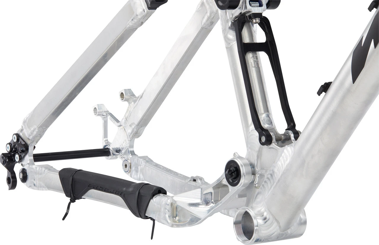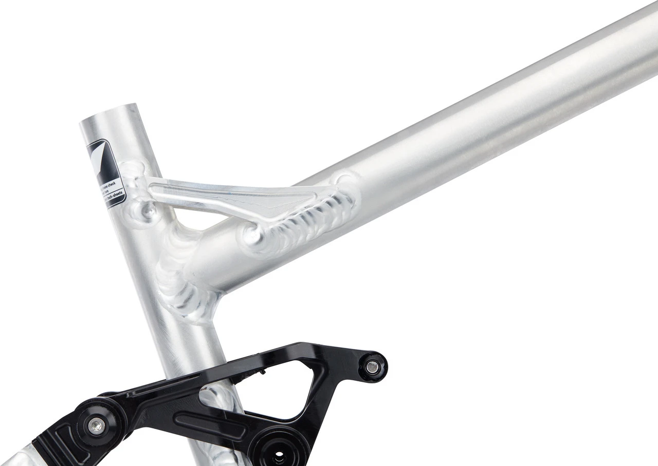 Durch den Einsatz von Mutatoren und Steuersätzen mit verschiedenen Einbauhöhen lässt sich der Rahmen mit 29″ – und 27,5″ – Laufrädern aufbauen. Bei einem Rahmenaufbau mit 27,5″ -Laufrädern kann der Rahmen entweder mit einem 210 x 55 mm oder einem 210 x 50 mm Dämpfer aufgebaut werden. Der resultierende Federweg am Hinterrad beträgt 138 mm bzw. 130 mm. Die 29″ -Rahmenversion sollte nur mit einem 210 x 50 mm Dämpfer und 130 mm Federweg gefahren werden. Zwar würde auch ein 210 x 55 mm Dämpfer an diesem Rahmen 138 mm Federweg freigeben, die Reifenfreiheit reduziert sich jedoch durch den gestiegenen Federweg, sodass diese Konfiguration nicht empfohlen wird.