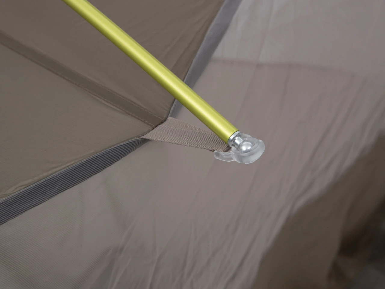 Das Innenzelt besteht aus drei verschiedenen Materialien, die für ein angenehmes Innenklima sorgen. Die Ventilation wird durch ein abdeckbares Moskitonetz geregelt. Ein feines Mesh lässt Wasserdampf entweichen und verhindert das Tropfen von Kondenswasser. Ripstop-Material erzielt eine hohe Textilspannung, sodass der Platz optimal ausgenutzt wird.