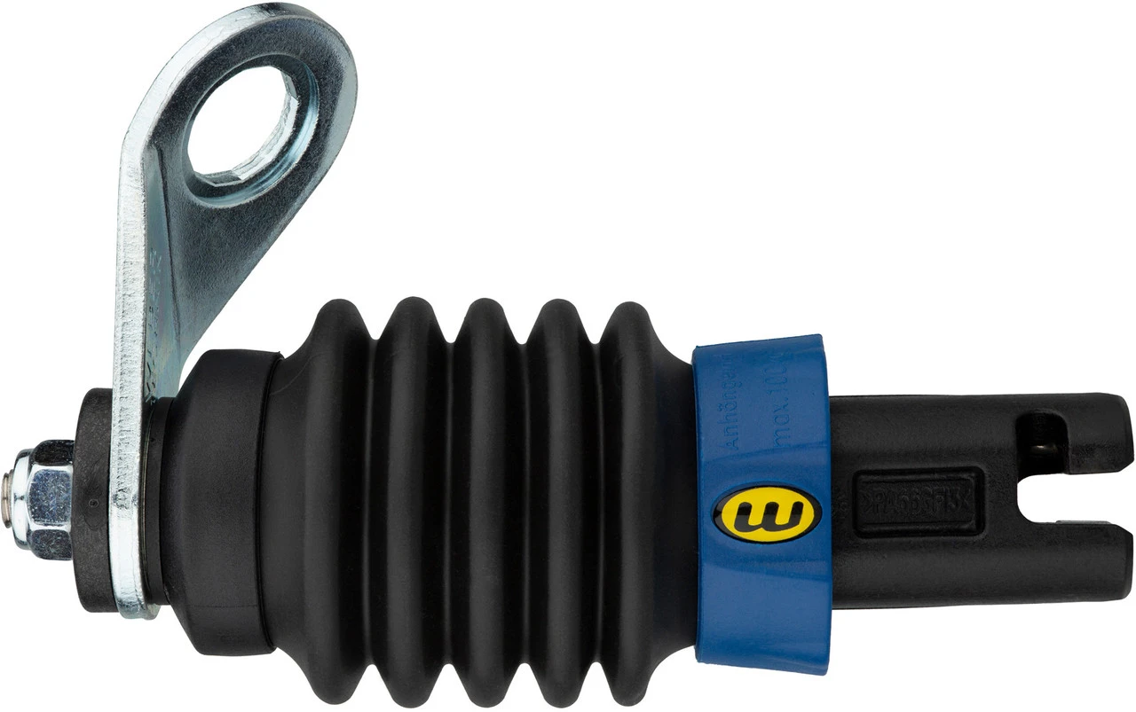 Die Kupplung ES von Weber ist die Lastenversion der Kupplung E. Sie ist nur für Lastenanhänger bis zu einer Zuglast von 100 kg geeignet (Achtung: bei Anbindung an eine Schnellspannachse sind nur 80 kg Gesamtgewicht erlaubt).